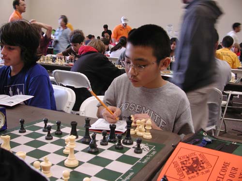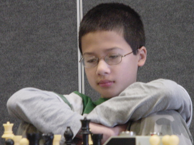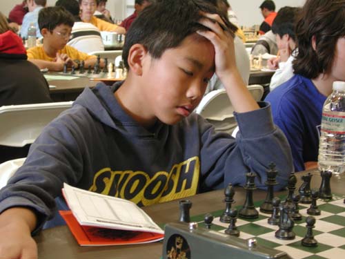 Redwood teammate Evan Ye looks concerned on move 5 in the Sicilian.